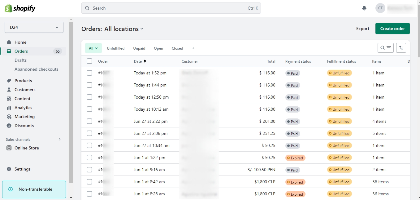 Once you enter the order details, at the bottom of this screen you will see the payment method used to pay for the order, in this case D24.