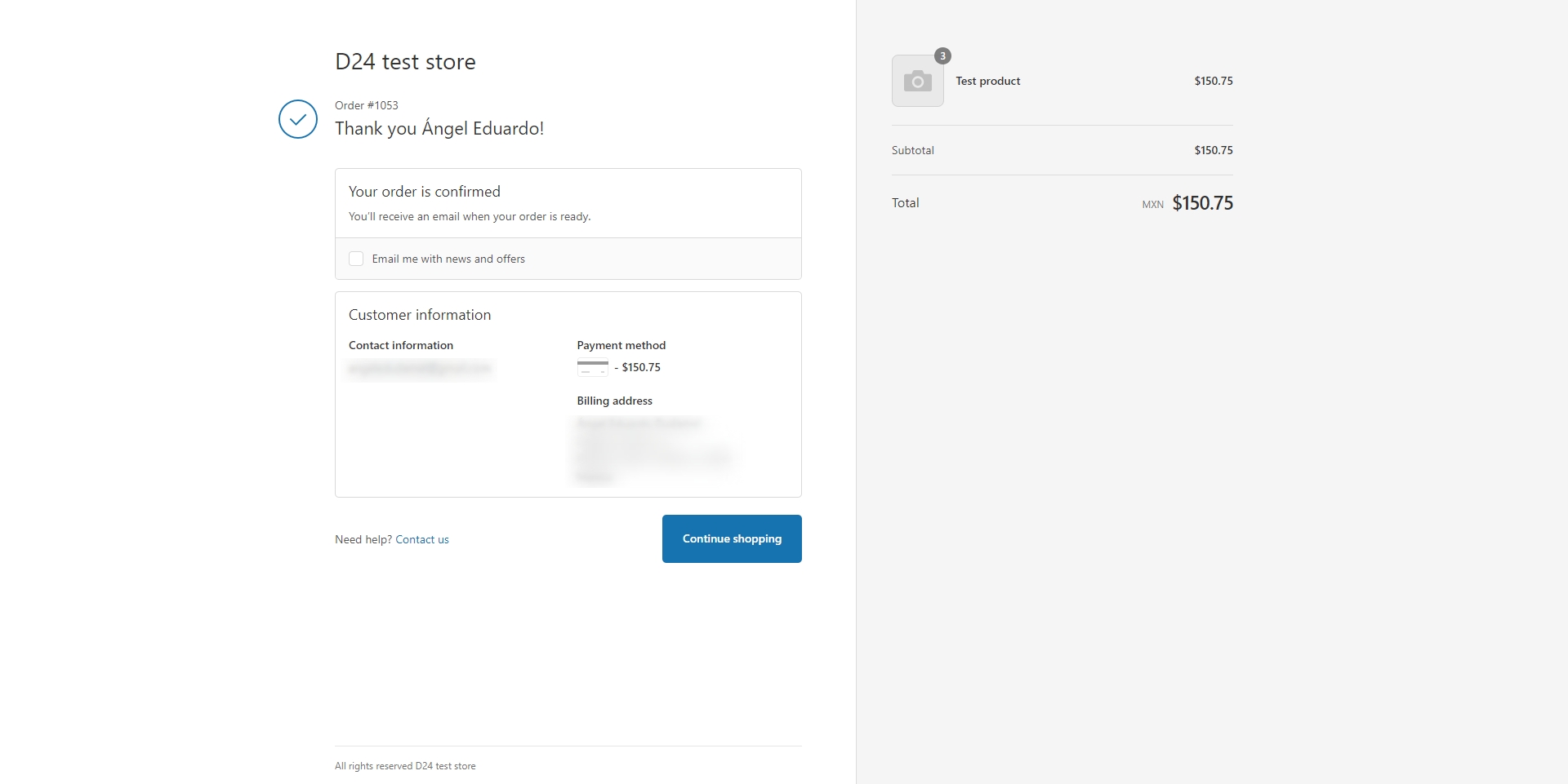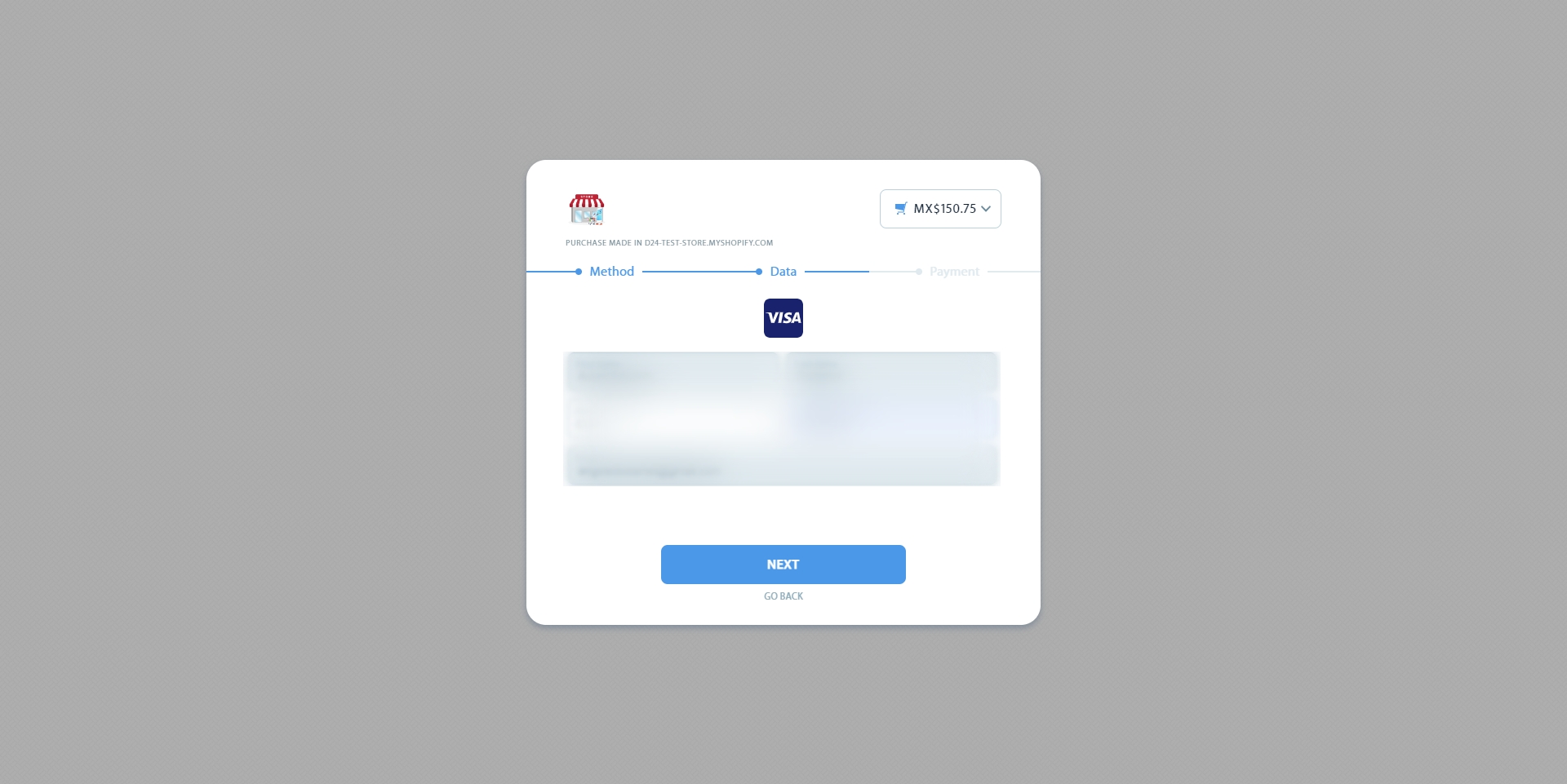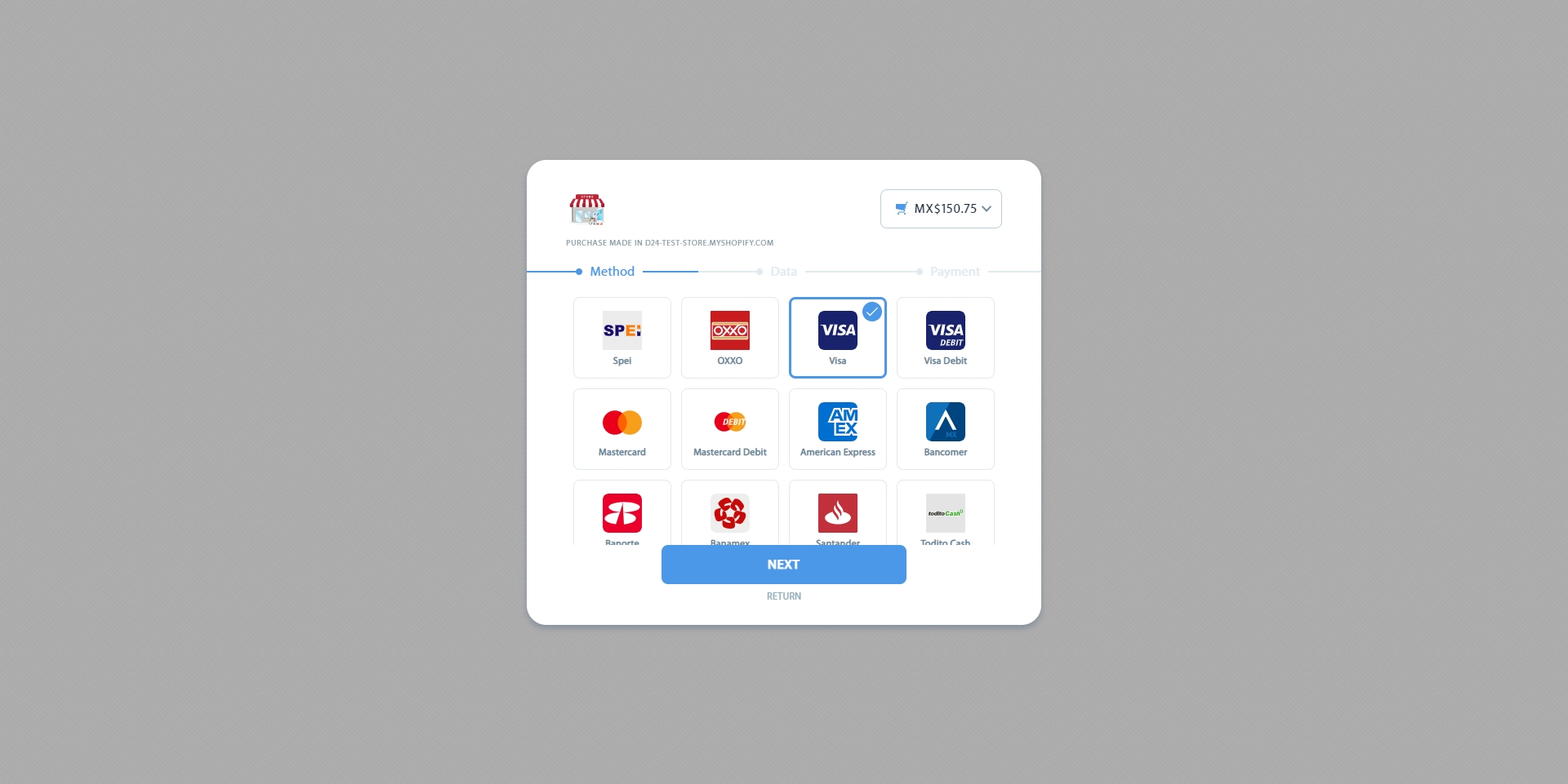 When adding products to the cart and going to checkout, the consumer will see D24 as a payment option.