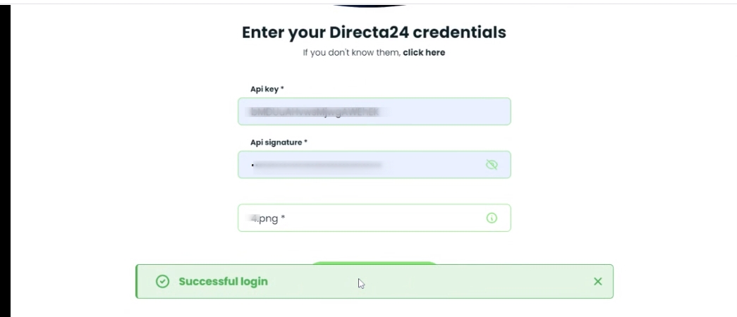 2. In the next screen you must enter the Api Key, and Api Signature. Do not forget to upload the logo!